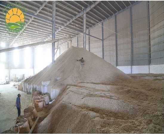 Hinh 1: Trấu nghiền tại kho Phúc Thịnh